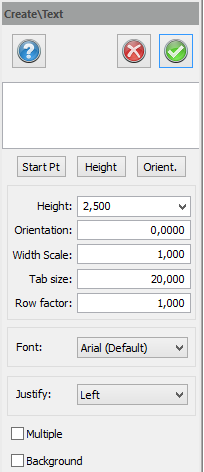 You can enter text directly into the drawing. It is also possible to select the height, rotation and width for the text.
