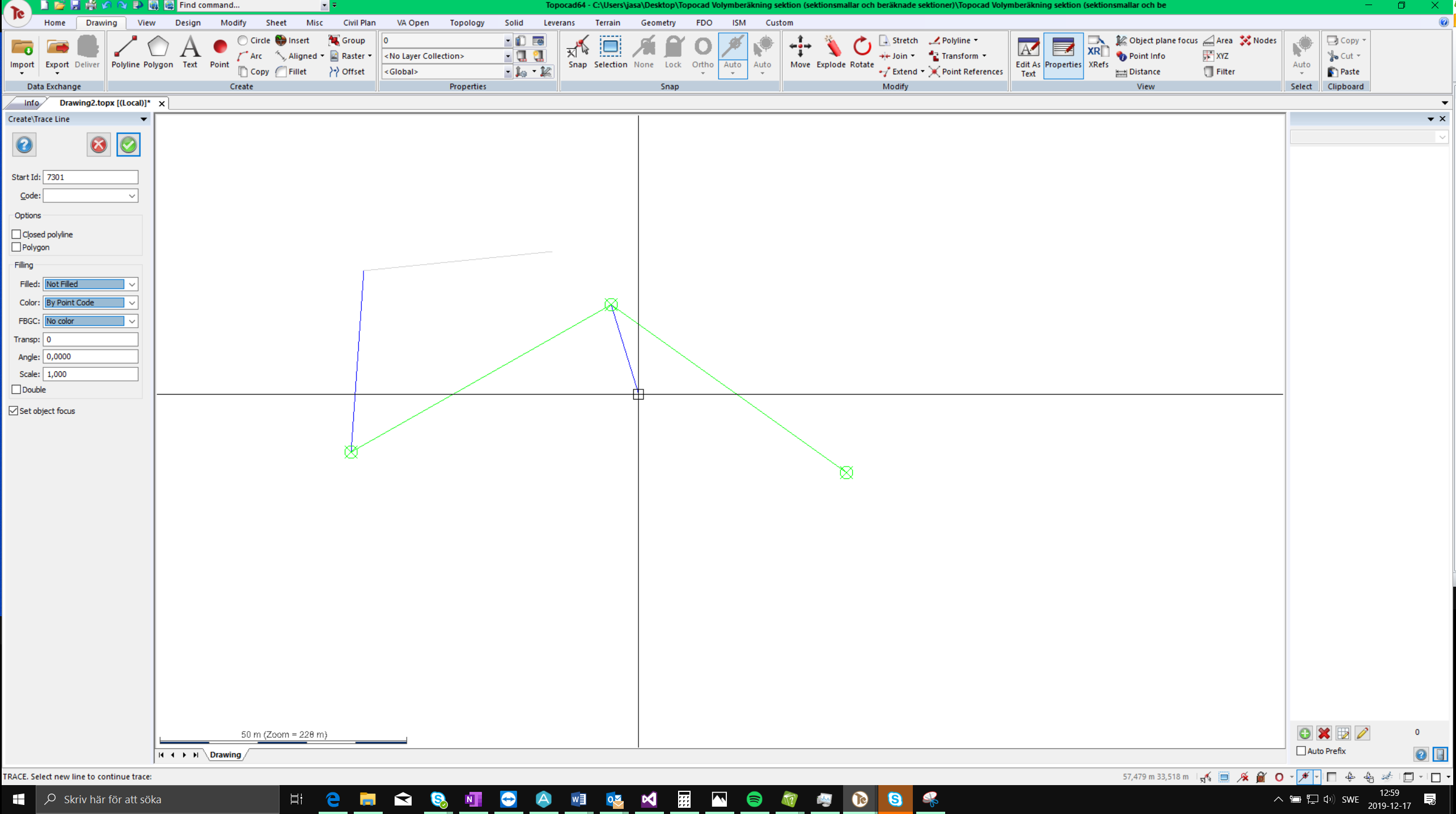 Press enter or the green checkmark to confirm the line.