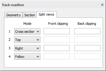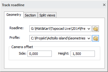 Function for center view on roadline section. Open a roadline and a profile. Go to the tab section to move the cursor to track the roadline forwards and backwards. Select split views to get a good overview.