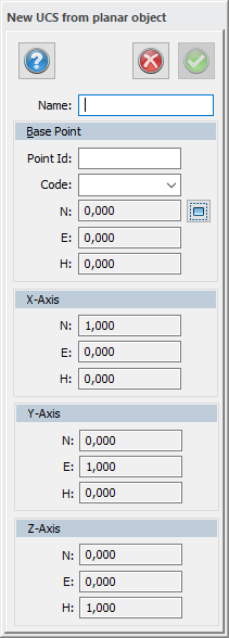 Enter the base point of the coordinate system and the direction of base point axis, it shows the extent to which the direction of the x-axis is. This is the same as the baseline command Topocad 15 except that you can not remove baselines (UCS) here.